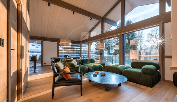 Au cœur d’un environnement calme et verdoyant aux Gets, ce chalet neuf signé Dunoyer meublé, équipé et décoré se distingue par ses prestations haut de gamme et ses agencements intérieurs sur-mesure.