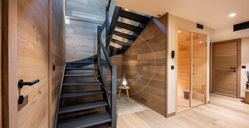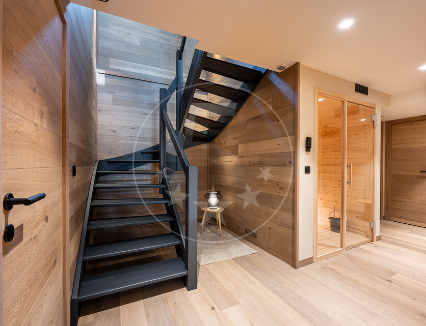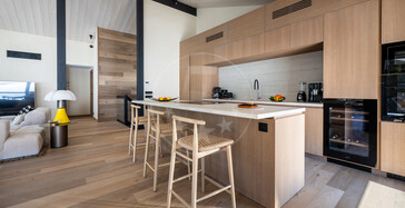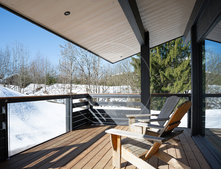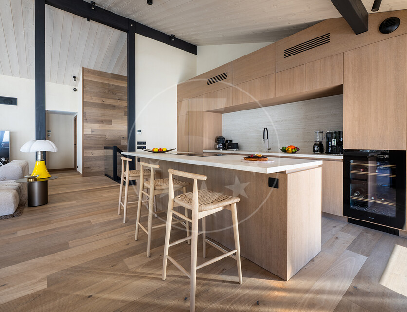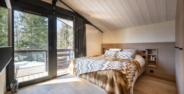 Le chalet de 163m² + 37m² d'annexes offre un superbe espace de vie avec salon cathédrale et salle à manger, ouvert sur une cuisine entièrement équipée, ainsi que trois chambres en-suite et un dortoir. Il dispose également d’un sauna, d’un ski-room, d’une buanderie et de nombreux rangements. Les balcons et terrasses prolongent les espaces de vie dans un cadre naturel privilégié.