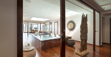 Environ 450m² de surface aménagée, un univers raffiné signé Axe&D : architecture, bois, verre et lumière.