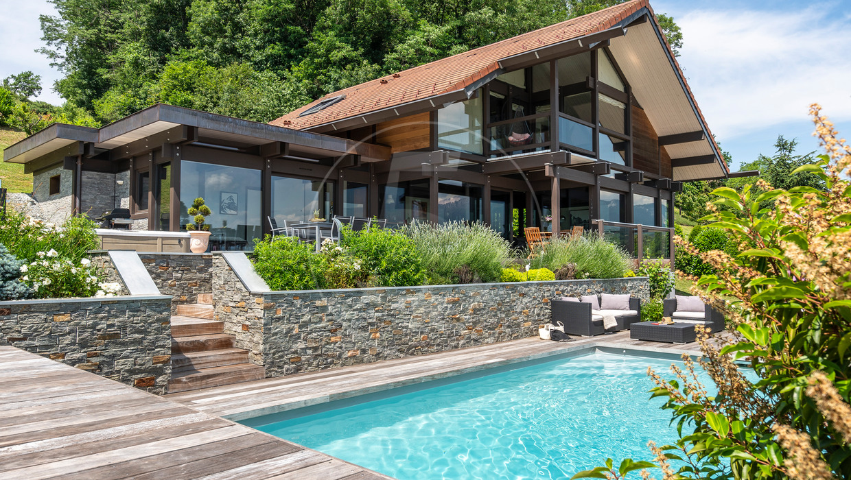 Niché sur les hauteurs de Sevrier ; avec une proximité immédiate et un accès facile depuis le centre-ville d’Annecy (3 km), le Domaine Le Châtaigner se compose de 2 propriétés Dunoyer.